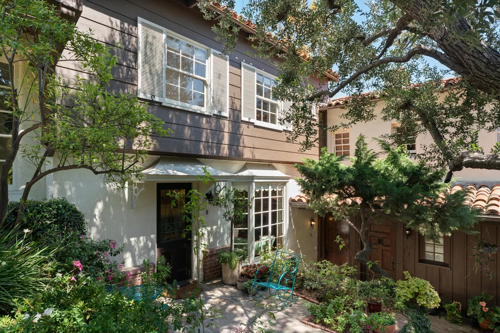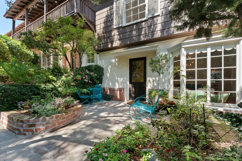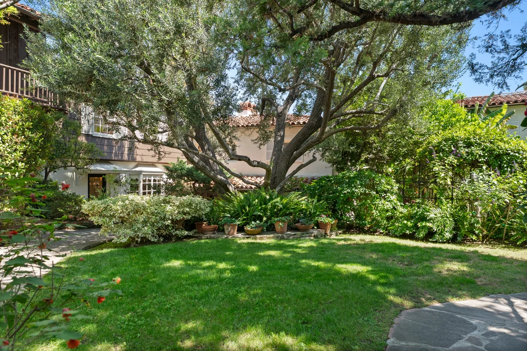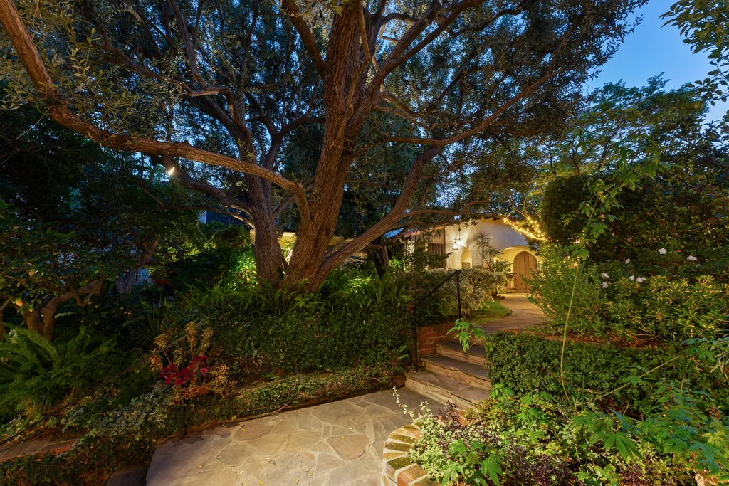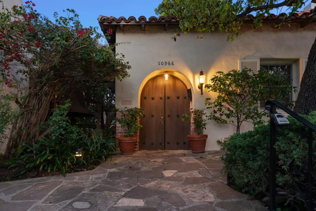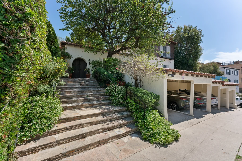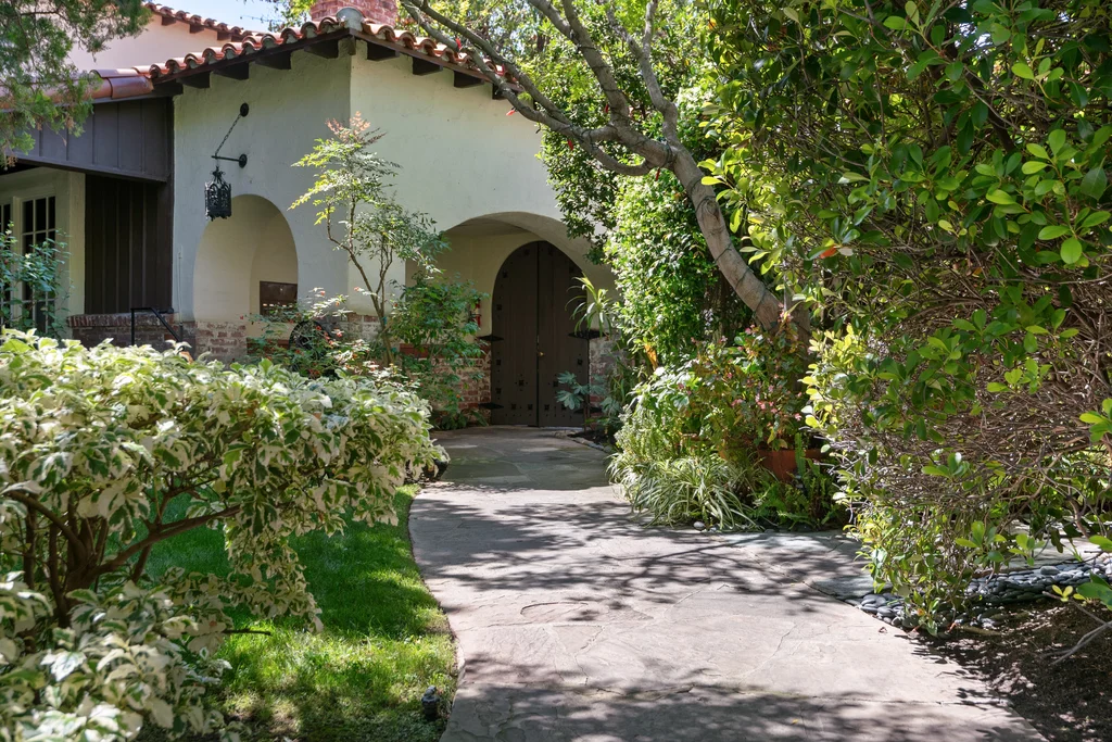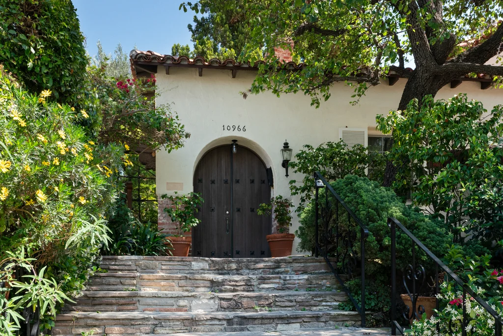 Tucked within a lush garden setting and anchored by a sculptural olive tree, this exquisitely restored 1935 Spanish residence offers a rare opportunity to experience the romance and craftsmanship of Hollywood-era architecture, thoughtfully revived for modern living. The two-bedroom, two-bath home unfolds with warmth and character, where every restoration choice has been carefully guided by the spirit of the original design. Rich color palettes, hand-finished details, and lovingly preserved architectural elements lend the home a distinctive sense of place. Period-sensitive updates enhance the structure's historic integrity while subtly introducing contemporary comfort. A rare California basemen, an uncommon feature for homes of this era, adds valuable flexibility for storage, studio space, or future creative use. The primary suite is generously proportioned and designed as a tranquil retreat, complete with a spacious walk-in closet, custom built-ins, and refined millwork that reflects the home's 1930s pedigree. Throughout the living and dining rooms, refinished wood floors, a restored fireplace with a newly crafted mantel, and bespoke lighting evoke the craftsmanship and elegance of the period. In the kitchen, authenticity takes center stage. A beautifully restored original Wedgewood stove serves as both focal point and functional centerpiece, complemented by custom cabinetry and thoughtfully selected materials chosen to remain faithful to the home's architectural lineage. Bathrooms have been reimagined with vintage-inspired fixtures and artisan tilework, ensuring a seamless visual dialogue with the home's original design language. Behind the scenes, modern upgrades including laminated glass windows and doors, updated electrical and plumbing systems, enhanced insulation, and custom millwork-provide both comfort and peace of mind. Beyond the interiors, lush landscaping frames a resort-style pool setting, creating a private outdoor retreat that feels worlds away from the city. Yet the home sits just a five-minute walk from the UCLA campus and medical center, placing world-class dining, cultural institutions, and Westwood Village's vibrant amenities moments from the front door. The residence also includes two parking spaces with a covered carport, a valuable convenience in this highly sought-after neighborhood. A truly rare offering, where the romance of 1930s Spanish architecture meets the thoughtful refinement of a meticulous restoration.