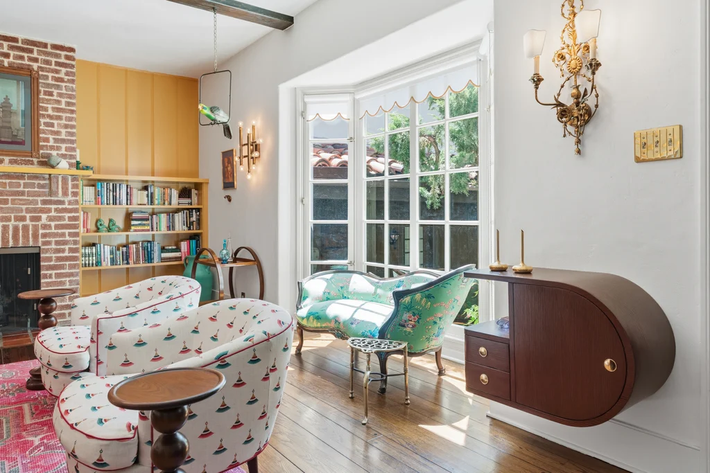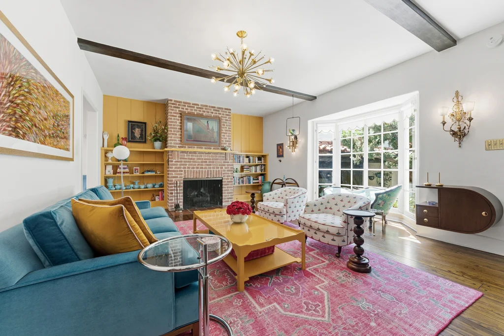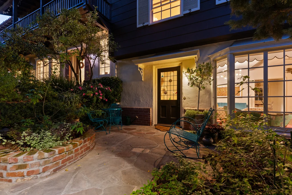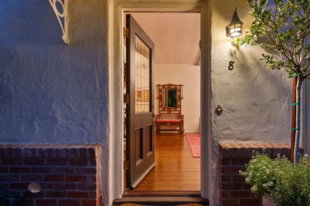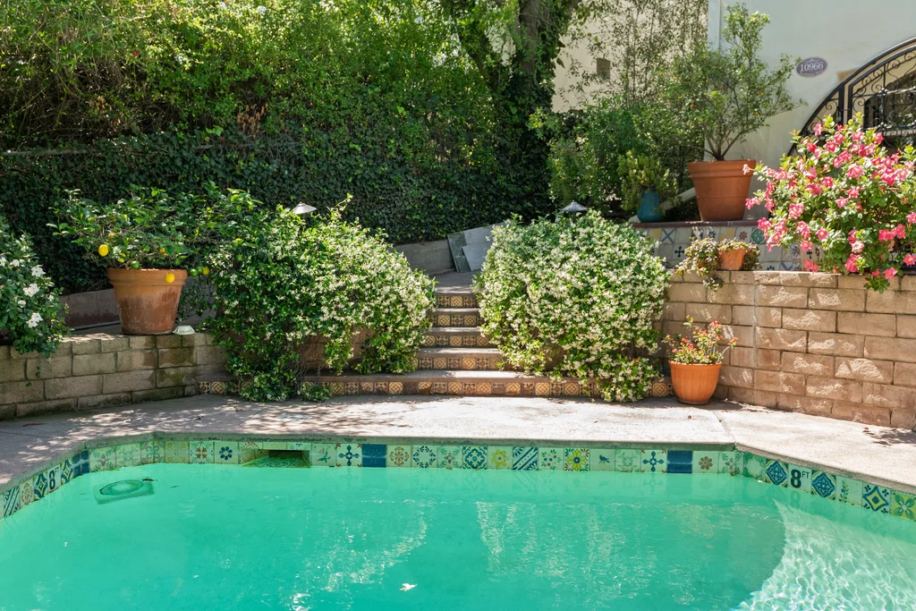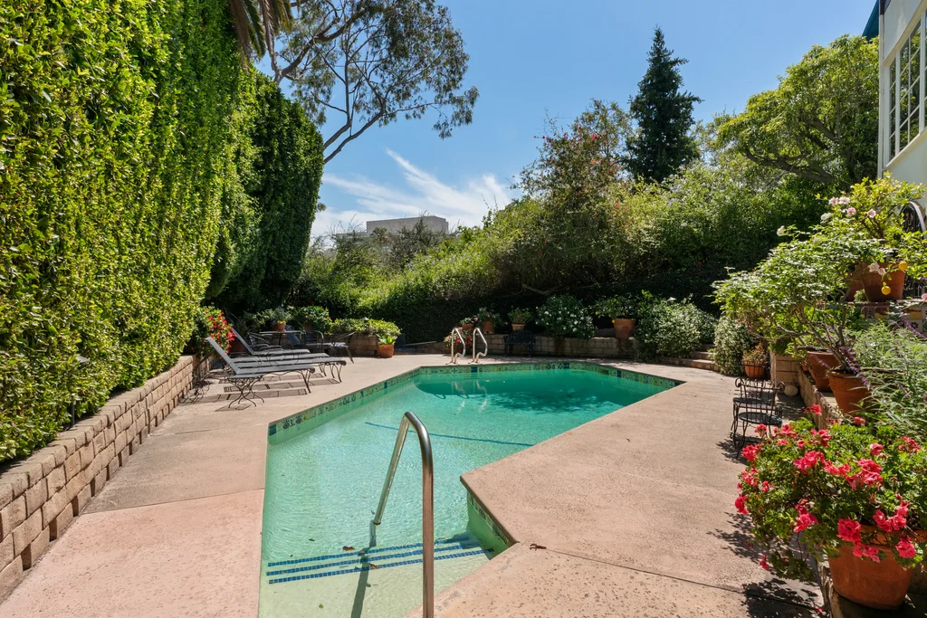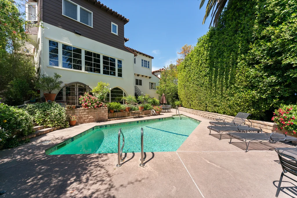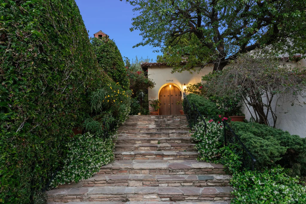 Tucked within a lush garden setting and anchored by a sculptural olive tree, this exquisitely restored 1935 Spanish residence offers a rare opportunity to experience the romance and craftsmanship of Hollywood-era architecture, thoughtfully revived for modern living. The two-bedroom, two-bath home unfolds with warmth and character, where every restoration choice has been carefully guided by the spirit of the original design. Rich color palettes, hand-finished details, and lovingly preserved architectural elements lend the home a distinctive sense of place. Period-sensitive updates enhance the structure's historic integrity while subtly introducing contemporary comfort. A rare California basemen, an uncommon feature for homes of this era, adds valuable flexibility for storage, studio space, or future creative use. The primary suite is generously proportioned and designed as a tranquil retreat, complete with a spacious walk-in closet, custom built-ins, and refined millwork that reflects the home's 1930s pedigree. Throughout the living and dining rooms, refinished wood floors, a restored fireplace with a newly crafted mantel, and bespoke lighting evoke the craftsmanship and elegance of the period. In the kitchen, authenticity takes center stage. A beautifully restored original Wedgewood stove serves as both focal point and functional centerpiece, complemented by custom cabinetry and thoughtfully selected materials chosen to remain faithful to the home's architectural lineage. Bathrooms have been reimagined with vintage-inspired fixtures and artisan tilework, ensuring a seamless visual dialogue with the home's original design language. Behind the scenes, modern upgrades including laminated glass windows and doors, updated electrical and plumbing systems, enhanced insulation, and custom millwork-provide both comfort and peace of mind. Beyond the interiors, lush landscaping frames a resort-style pool setting, creating a private outdoor retreat that feels worlds away from the city. Yet the home sits just a five-minute walk from the UCLA campus and medical center, placing world-class dining, cultural institutions, and Westwood Village's vibrant amenities moments from the front door. The residence also includes two parking spaces with a covered carport, a valuable convenience in this highly sought-after neighborhood. A truly rare offering, where the romance of 1930s Spanish architecture meets the thoughtful refinement of a meticulous restoration.