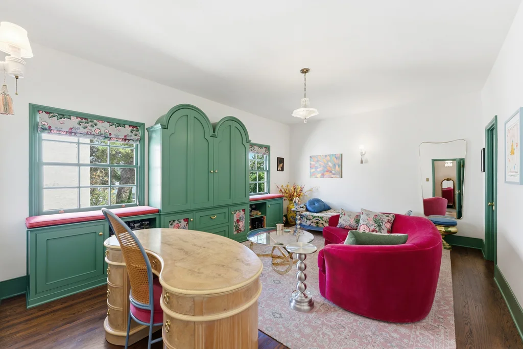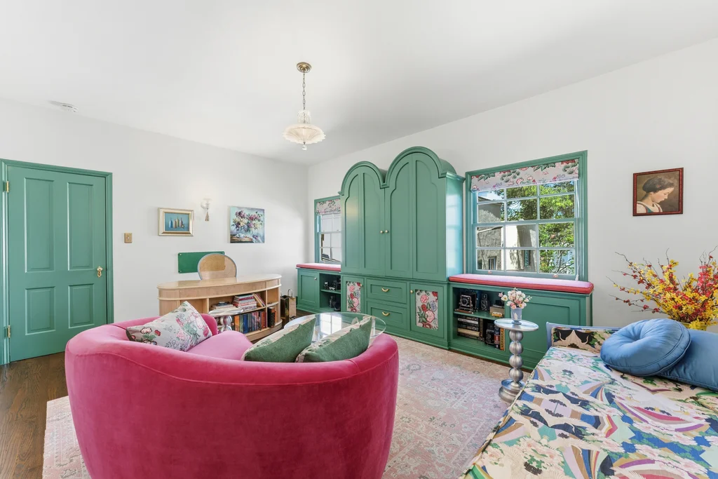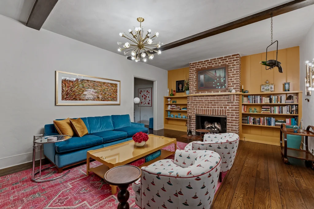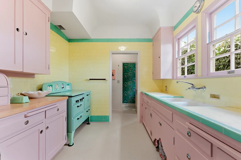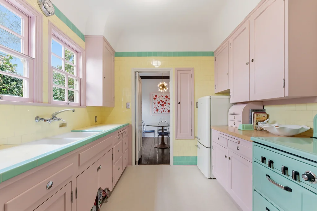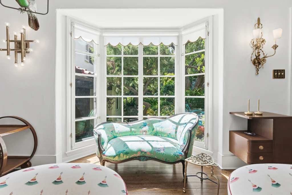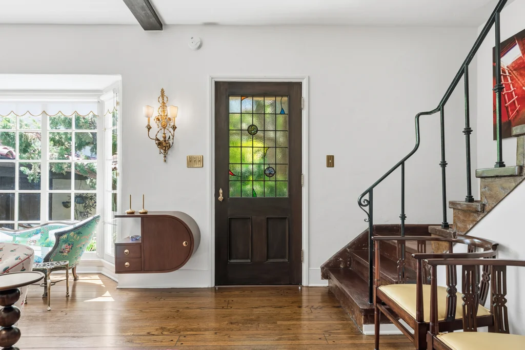 Tucked within a lush garden setting and anchored by a sculptural olive tree, this exquisitely restored 1935 Spanish residence offers a rare opportunity to experience the romance and craftsmanship of Hollywood-era architecture, thoughtfully revived for modern living. The two-bedroom, two-bath home unfolds with warmth and character, where every restoration choice has been carefully guided by the spirit of the original design. Rich color palettes, hand-finished details, and lovingly preserved architectural elements lend the home a distinctive sense of place. Period-sensitive updates enhance the structure's historic integrity while subtly introducing contemporary comfort. A rare California basemen, an uncommon feature for homes of this era, adds valuable flexibility for storage, studio space, or future creative use. The primary suite is generously proportioned and designed as a tranquil retreat, complete with a spacious walk-in closet, custom built-ins, and refined millwork that reflects the home's 1930s pedigree. Throughout the living and dining rooms, refinished wood floors, a restored fireplace with a newly crafted mantel, and bespoke lighting evoke the craftsmanship and elegance of the period. In the kitchen, authenticity takes center stage. A beautifully restored original Wedgewood stove serves as both focal point and functional centerpiece, complemented by custom cabinetry and thoughtfully selected materials chosen to remain faithful to the home's architectural lineage. Bathrooms have been reimagined with vintage-inspired fixtures and artisan tilework, ensuring a seamless visual dialogue with the home's original design language. Behind the scenes, modern upgrades including laminated glass windows and doors, updated electrical and plumbing systems, enhanced insulation, and custom millwork-provide both comfort and peace of mind. Beyond the interiors, lush landscaping frames a resort-style pool setting, creating a private outdoor retreat that feels worlds away from the city. Yet the home sits just a five-minute walk from the UCLA campus and medical center, placing world-class dining, cultural institutions, and Westwood Village's vibrant amenities moments from the front door. The residence also includes two parking spaces with a covered carport, a valuable convenience in this highly sought-after neighborhood. A truly rare offering, where the romance of 1930s Spanish architecture meets the thoughtful refinement of a meticulous restoration.