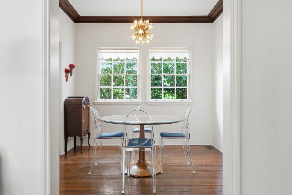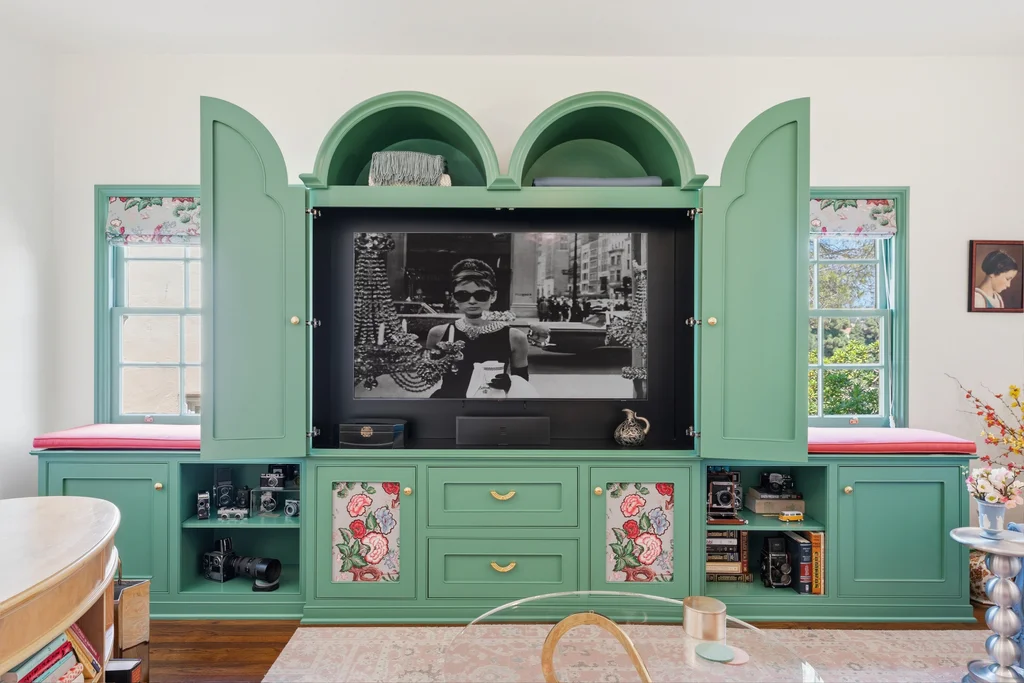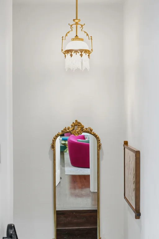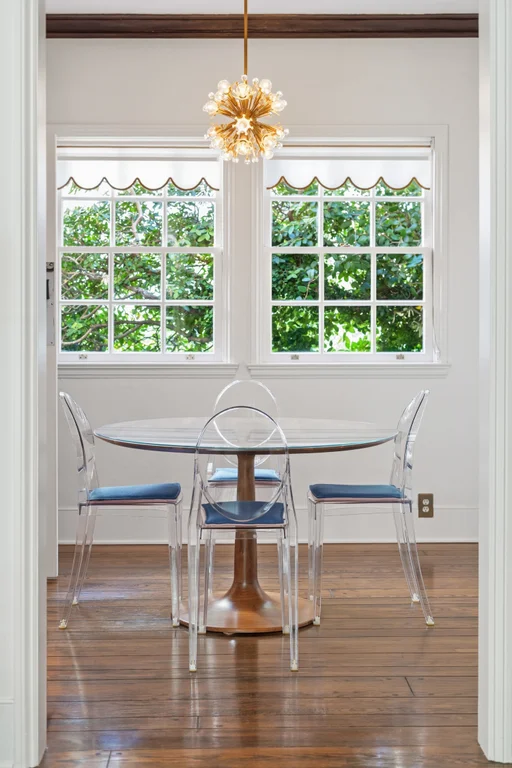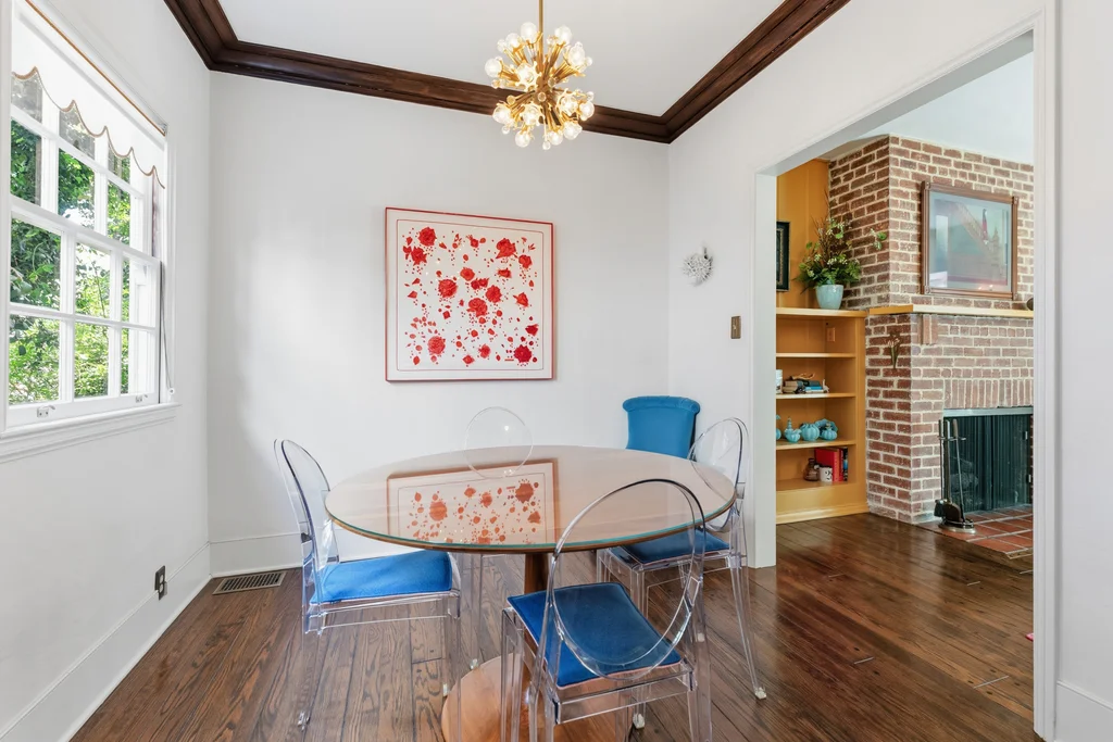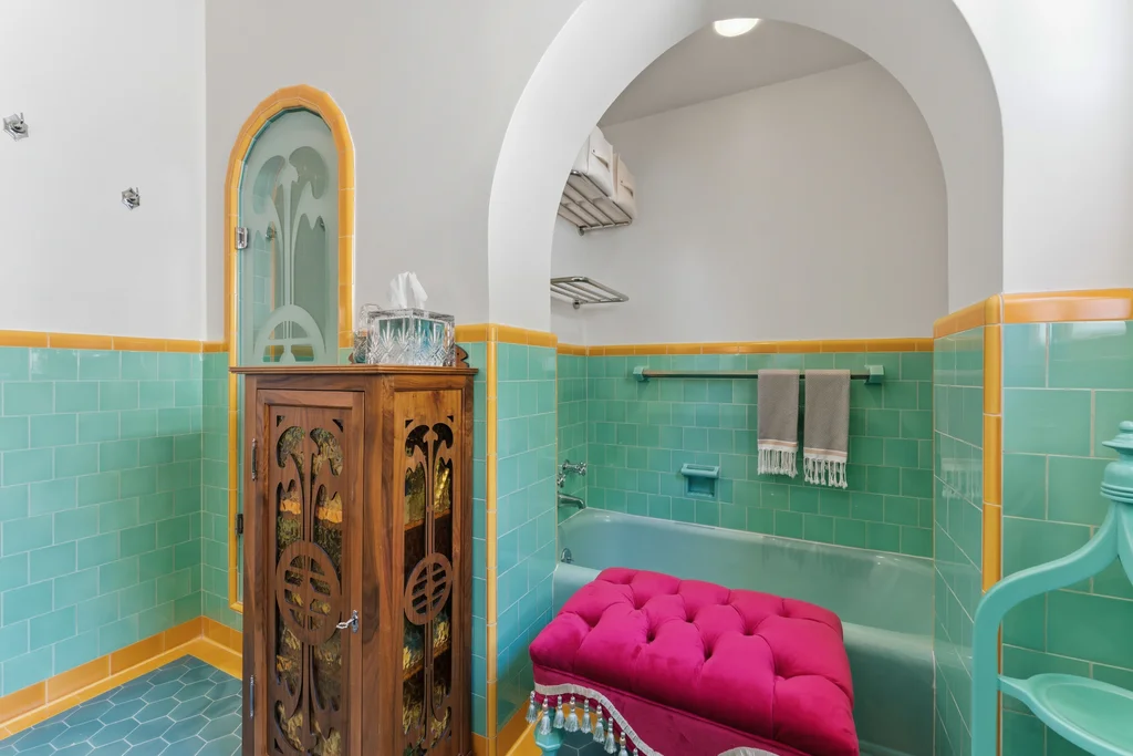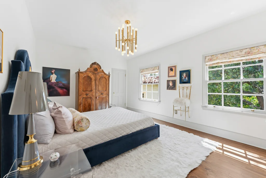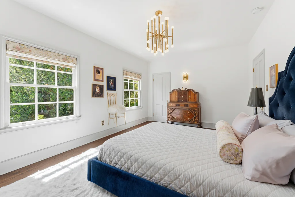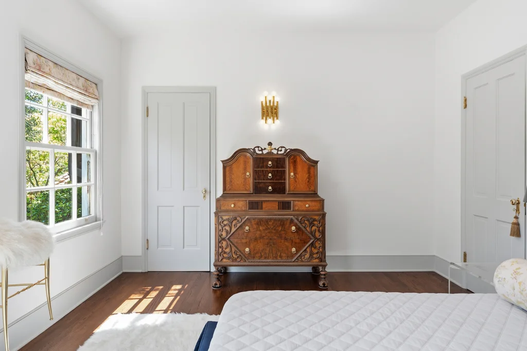Tucked within a lush garden setting and anchored by a sculptural olive tree, this exquisitely restored 1935 Spanish residence offers a rare opportunity to experience the romance and craftsmanship of Hollywood-era architecture, thoughtfully revived for modern living. The two-bedroom, two-bath home unfolds with warmth and character, where every restoration choice has been carefully guided by the spirit of the original design. Rich color palettes, hand-finished details, and lovingly preserved architectural elements lend the home a distinctive sense of place. Period-sensitive updates enhance the structure's historic integrity while subtly introducing contemporary comfort. A rare California basemen, an uncommon feature for homes of this era, adds valuable flexibility for storage, studio space, or future creative use. The primary suite is generously proportioned and designed as a tranquil retreat, complete with a spacious walk-in closet, custom built-ins, and refined millwork that reflects the home's 1930s pedigree. Throughout the living and dining rooms, refinished wood floors, a restored fireplace with a newly crafted mantel, and bespoke lighting evoke the craftsmanship and elegance of the period. In the kitchen, authenticity takes center stage. A beautifully restored original Wedgewood stove serves as both focal point and functional centerpiece, complemented by custom cabinetry and thoughtfully selected materials chosen to remain faithful to the home's architectural lineage. Bathrooms have been reimagined with vintage-inspired fixtures and artisan tilework, ensuring a seamless visual dialogue with the home's original design language. Behind the scenes, modern upgrades including laminated glass windows and doors, updated electrical and plumbing systems, enhanced insulation, and custom millwork-provide both comfort and peace of mind. Beyond the interiors, lush landscaping frames a resort-style pool setting, creating a private outdoor retreat that feels worlds away from the city. Yet the home sits just a five-minute walk from the UCLA campus and medical center, placing world-class dining, cultural institutions, and Westwood Village's vibrant amenities moments from the front door. The residence also includes two parking spaces with a covered carport, a valuable convenience in this highly sought-after neighborhood. A truly rare offering, where the romance of 1930s Spanish architecture meets the thoughtful refinement of a meticulous restoration.